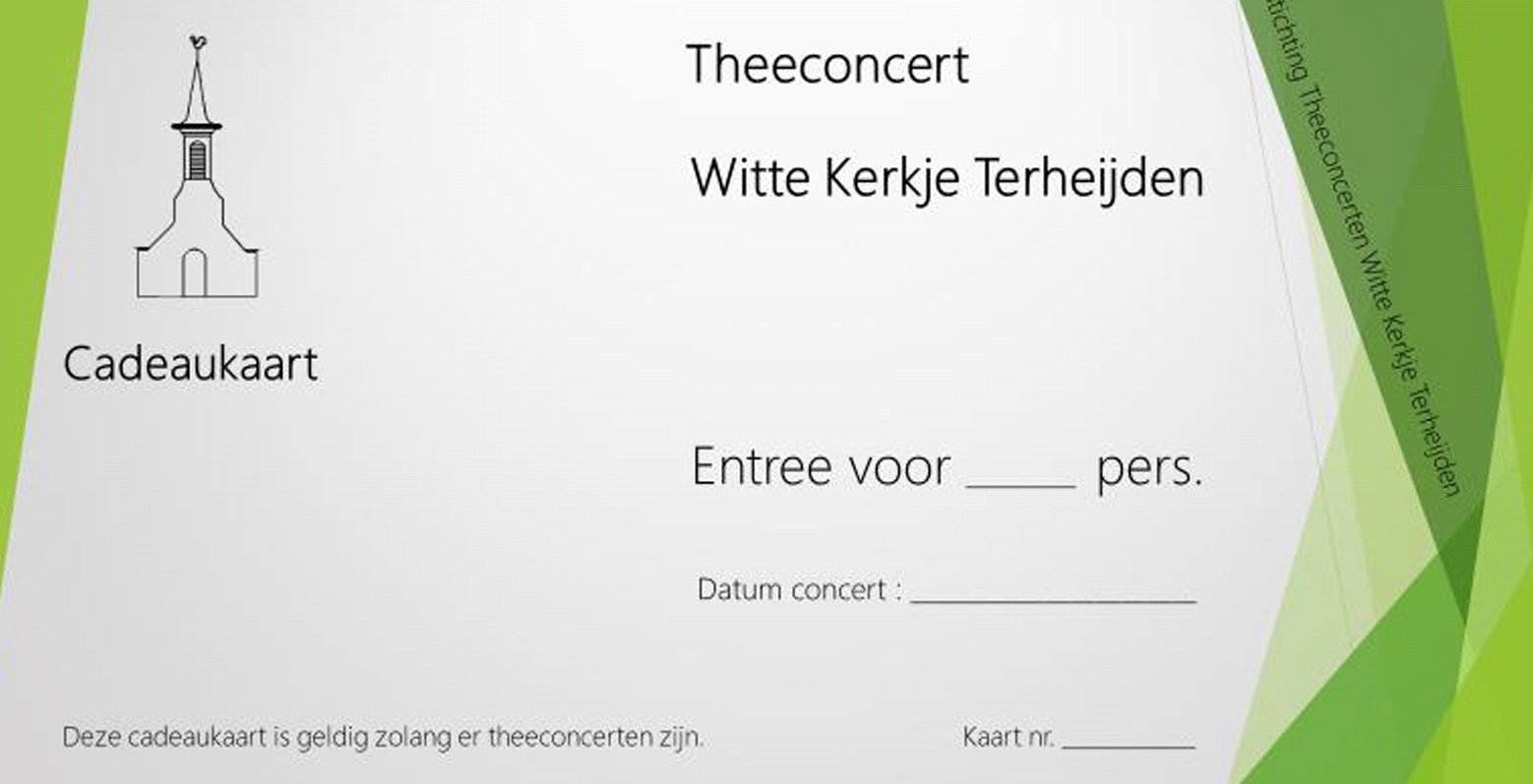 Bankrekening: NL92 RABO 0305 7899 29 t.n.v. Stg. Theeconcerten Witte Kerkje Terheijden